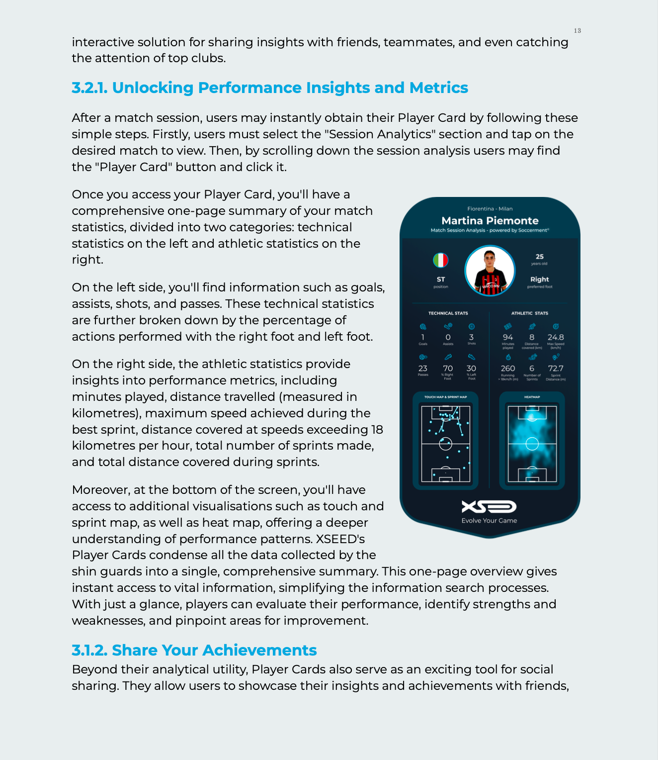 Dal rilevamento di metriche atletiche come la velocità, la distanza e gli sprint fino alla comprensione di aspetti tecnici come le azioni eseguite con il piede destro e con il piede sinistro, XSEED consente ai giocatori di tutte le età e di tutti i livelli di abilità di migliorare il proprio gioco. Esplorate tutte le caratteristiche che il parastinchi intelligente offre e Scopri come può aiutare lo sviluppo dei giocatori.
